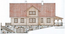 Projekt zespołu domów letniskowych w stylu mazurskim, hotelu i obiektów rekreacyjnych DOBRA ZAWADA k/Mrągowa, inwestor: Andrzej Bonarski, urbanistyka i projekt hotelu: Paweł Detko, Piotr Jurkiewicz i MIachał Owadowicz, projekty domów art.plast. Mikołaj Nowotniak, WPP “TUTAJ”