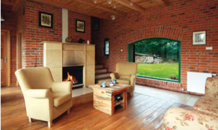 po lewej poniżej i powyżej widoki domu i jego wnętrza po adaptacji