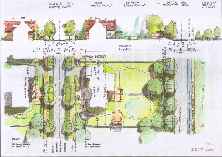 Komorów Kampinoski, plan parcelacjii i zabudowy, projekt osiedla 50 domów jednorodzinnych, inwestor FRINAILLA